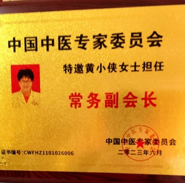2021年中医协会授予:“黄小侠中国优秀名老中医"光荣称号。