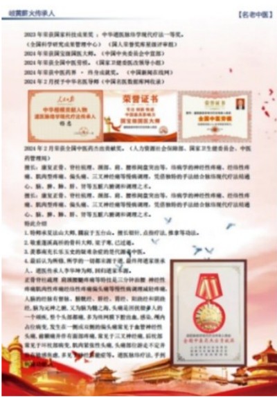 2023年荣获百位国宝级中医(中国中医名人网、全国人才技能认证管理中心、中医认证管理中心、中国卫生健康人才网)